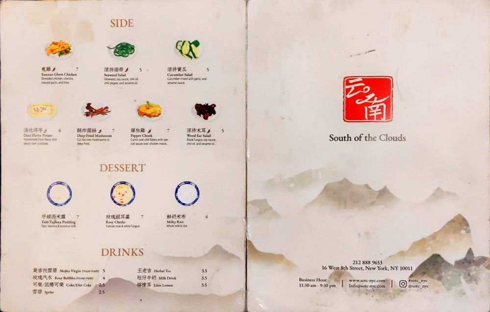 Welcome to South Of The Clouds, a captivating steakhouse nestled in the heart of New York City at 16 W 8th St. This culinary gem specializes in a variety of bold and aromatic dishes that celebrate the rich flavors of Yunnan cuisine.